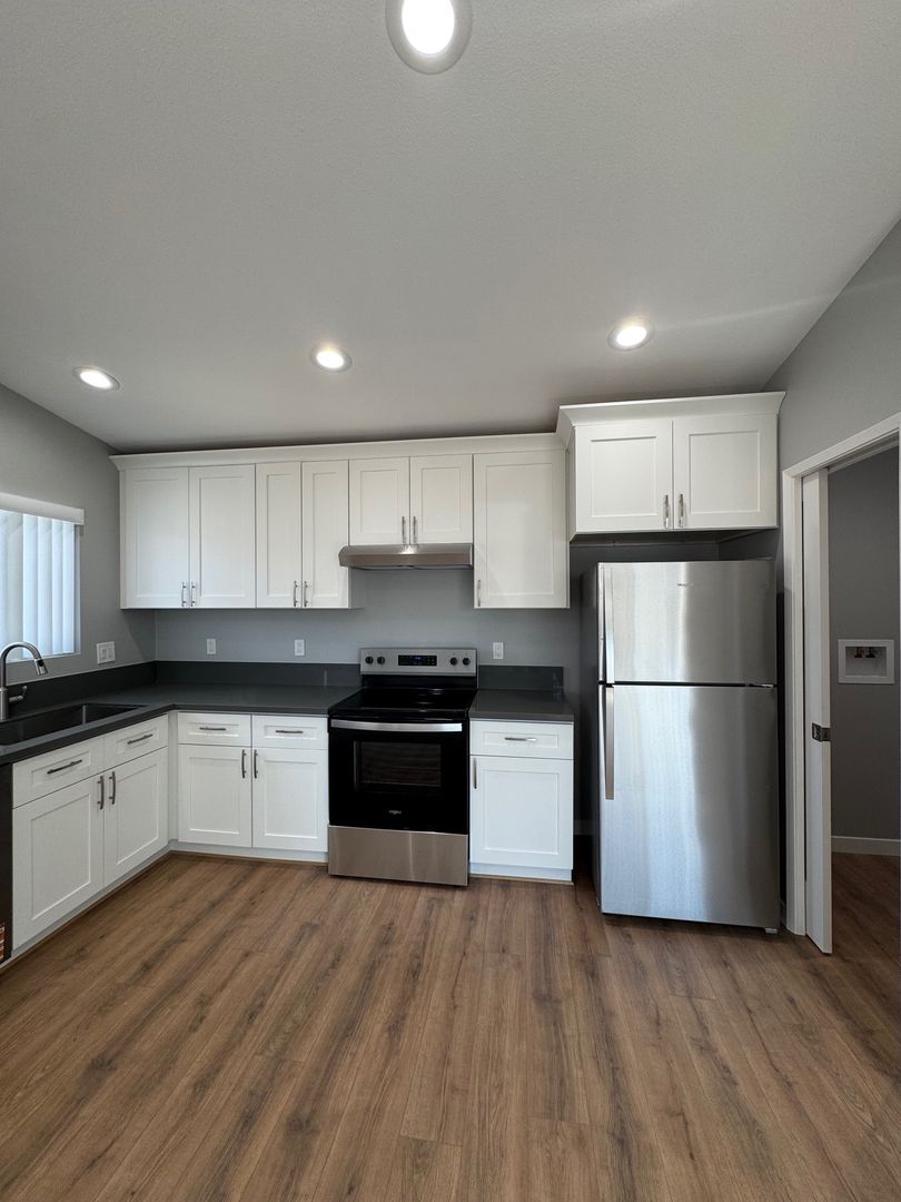 Welcome to this newly built, stunning home located in the vibrant city of Oxnard, CA. This property boasts a modern open floor plan with high ceilings, creating a spacious and airy atmosphere. The house features one bedroom and one bathroom, perfect for those who value comfort and simplicity. The interior has been freshly painted and new flooring has been installed, giving the home a sleek and contemporary feel. The new windows allow for an abundance of natural light to flood the living spaces, enhancing the overall ambiance. The home also comes with a brand new A/C system, ensuring you stay cool during those warm California summers. Additionally, the property includes a dedicated laundry room, adding to the convenience of this home. Experience the perfect blend of style and functionality in this Oxnard gem. This property is a detached ADU. Access for entry and vehicle entry is in the back alley. Utilities are separate and tenants responsibility. All adults must have a 650 minimum credit score. Please do not apply before viewing the property.